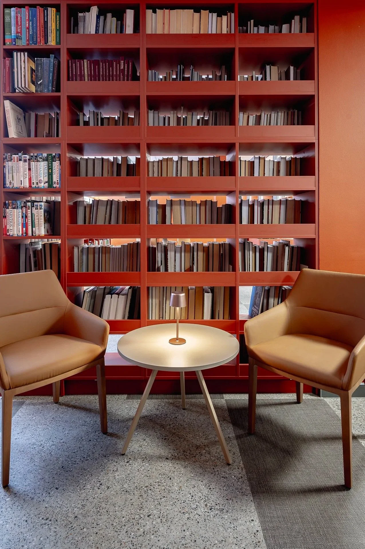 Šio projekto idėja – sukurti biblioteką, kurioje erdvė ir spalva nebūtinai yra tik funkcionalumo išraiška, bet ir aktyvus emocijų kūrėjas. Terakotinės ir kakavinės spalvos sukuria šilumą ir intymumą, kviečia pasilikti ir išgauti iš erdvės daugiau nei tik žinias. „Spalva nėra tik paviršius, ji turi galią pakeisti erdvės esmę“, – kaip sakė architektas Le Corbusier. Šis požiūris tapo pagrindu, kad biblioteka taptų ne tik knygų, bet ir pojūčių saugykla, kurioje lankytojas jaučiasi saugiai, įkvėptas ir atviras kūrybai.
